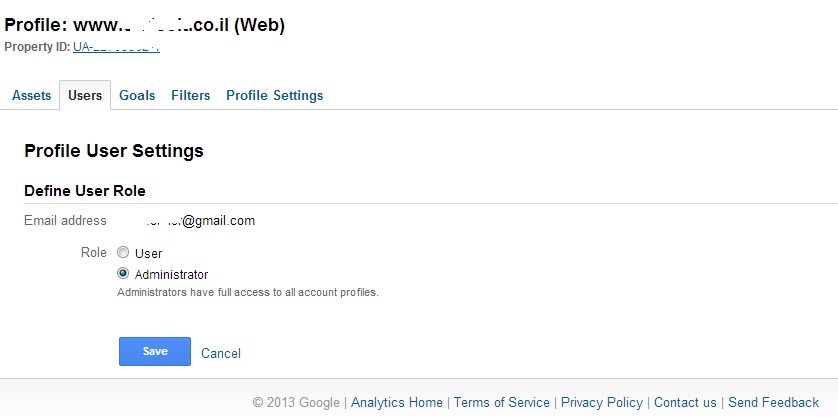 לאחר שפתחנו חשבון אנליטיקס לאתר נשתמש בחשבון זה כדי להזמין את הגורמים הרלוונטים כמו מנהלי האתר, אנשי השיווק וקידום האתרים וכו, לצפות בחשבון זה – לחלקם ניתן הרשאת מנהלים ולחלקם הרשאת משתמשים (כמובן שלמומחי ה-SEO יש לתת גישת מנהל על מנת לאפשר את תהליכי הקידום והניתור הקשורים עם החשבון).